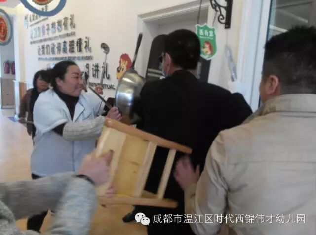 为提高教职工应对突发事件的能力,进一步强化教职工的安全意识,保证全园师生生命安全及幼儿园财产安全,丰富我园的教育教学活动,我园于2015年11月27日下午5:00(离园时刻),在幼儿园开展了一次别开生面的安全防暴演练活动。