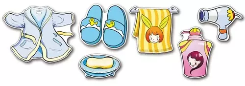 在“洗澡啦”活动中,找到吱吱洗澡时需要用到的物品,放到口袋中。