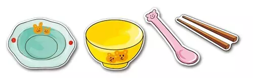 在“吃饭啦”活动中,找到吱吱吃饭时用到的餐具、食物等进行归类,同时还要根据食物的某种属性进行认知归类,如:甜、酸、冷、热等。