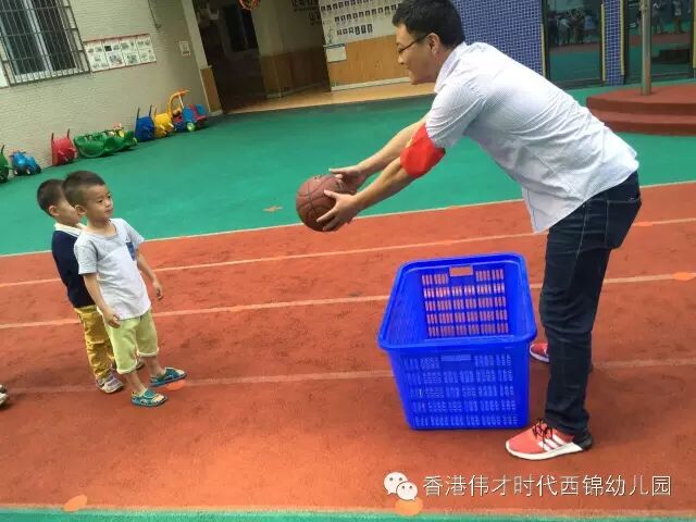 小二班的余宛静爸爸则教小朋友们学习打篮球,不仅学会了新本领,同时还增强了体质。