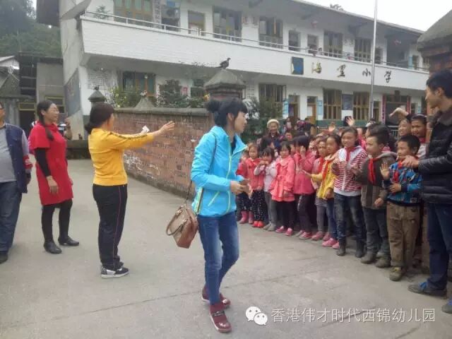 2016年10月19日星期三凌晨五点,时代西锦伟才幼儿园的支教老师和家长志愿者们在幼儿园门口整队出发,前往泸州叙永县枧槽苗族乡海里小学,经过6个小时的车程颠簸,我们终于来到了在群山之间飘扬着五星红旗的地方。