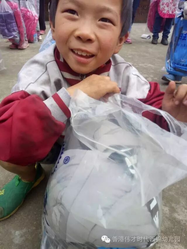 期盼已久的孩子们,早已等候在门口,他们迫不及待、争先恐后地帮我们搬运物资。接着,所有的家长志愿者开始把衣物分发给孩子们,孩子们开心极了!