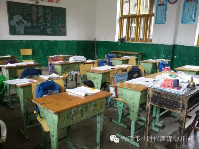 看着孩子们开心的样子,自愿者们也露出了欣慰的笑容!随后,我们来到了孩子们上课的教室里,当我们看到破旧的墙壁和破旧的课桌,无不让现场每一位家长和教师动容…